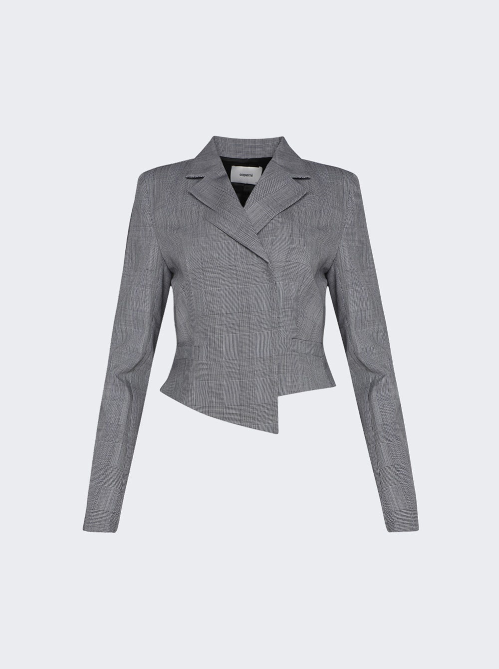 Details - Regular fit - Cropped silhouette - Long sleeves - Notched lapels - Button fastening - Faux pocket detail on the front - Asymmetric hem - Full lining Dimensions: Model is 5'9"/175cm and is wearing a size FR36 Composition: 100% Wool Care: Care according to label Brand Style: COPV54834 Designer/Brand: COPERNI