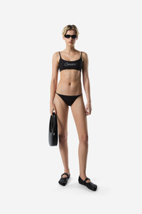This pull-on black stretch bikini top shines bright and promises to scintillate in the sun thanks to its unmissable crystal-embellished Coperni logo. Details Black COPSW03F5025A Polyamide Made in Portugal Size and Fit Model is 175 cm / 5.9 ft and wears size S