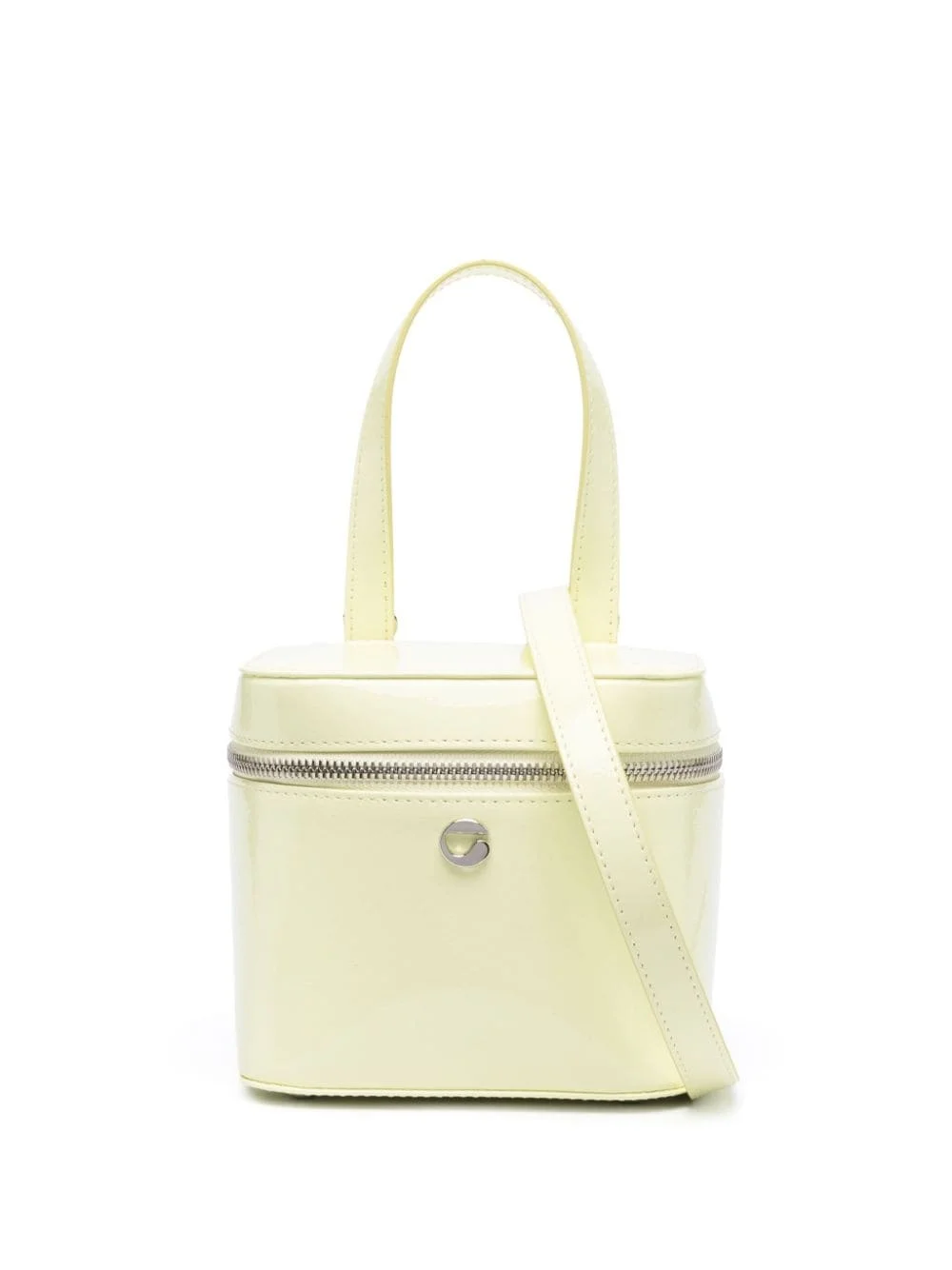 cube faux-leather crossbody bag Highlights - Light yellow - Faux leather - Square body - Silver-tone logo plaque - All-around zip fastening - Single top handle - Detachable shoulder strap - Main compartment Imported Composition Outer: Polyester 56%, Polyurethane 44% Lining: Polyurethane 50%, Polyamide 50% SIZE & FIT Model measurements Height 5 ft 10 in(1.78 m) Bust/Chest 33.07 in(84 cm) Hips 36.61 in(93 cm) Waist 24.8 in(63 cm) Measurement DEPTH 5.51 in(14 cm) HANDLE 3.93 in(10 cm) HEIGHT 5.51 in(14 cm) STRAP 23.62 in(60 cm) WIDTH 5.51 in(14 cm)