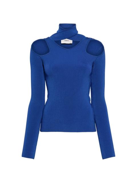 cut-out ribbed sweater Adding an innovative twist to classic knitwear design, this long-sleeve top from Coperni is presented in a monochromatic hue with creative cut-out detailing. Imported Composition Viscose 87%, Elastane 13% SIZE & FIT Model measurements Height 5 ft 10 in(1.77 m) Bust/Chest 32.28 in(82 cm) Hips 35.03 in(89 cm) Waist 25.19 in(64 cm) Measurement CHEST 24.4 in(62 cm) LENGTH 21.65 in(55 cm) WAIST 23.62 in(60 cm) FittingInformation Designed for a close fit throughout Made with a lightweight knit, this piece offers some stretch This piece fits true to size – take your usual size Washing instructions Hand Wash