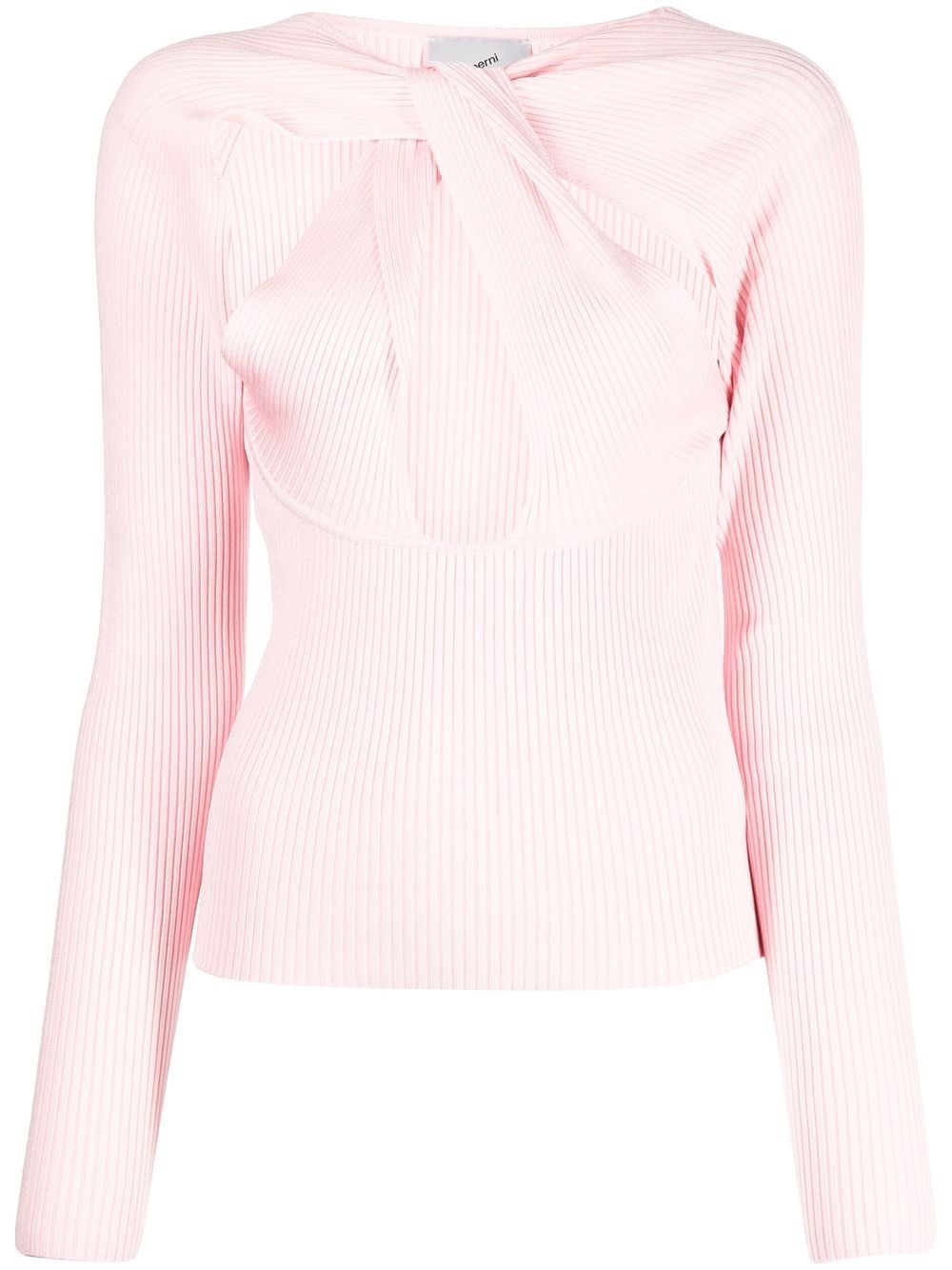 Description cut out-detail ribbed jumper Highlights ['* rose pink', '* ribbed knit', '* cut-out detailing', '* round neck and long sleeves.'] Made in China Composition Viscose 100%