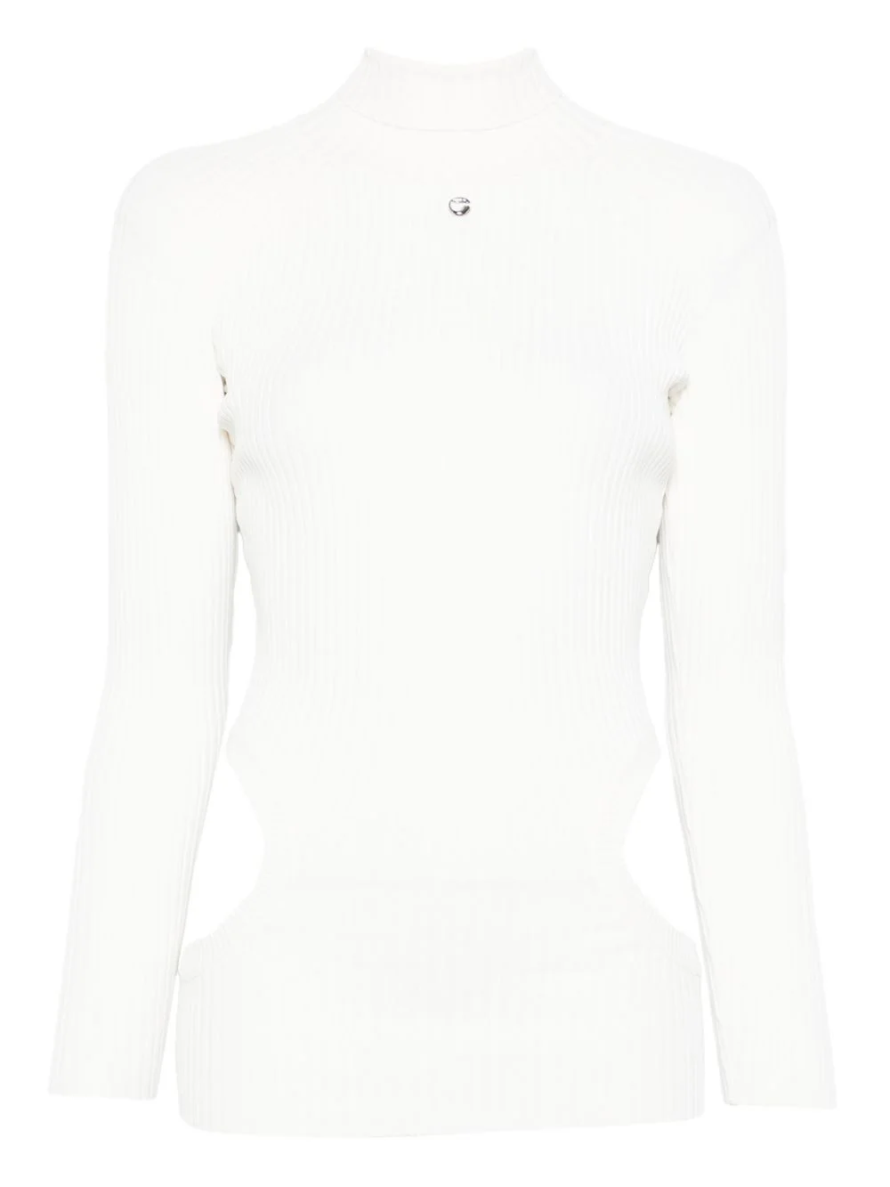 cut-out detail ribbed top Highlights - White - Ribbed knit - Cut-out detailing - High neck - Long sleeves - Tonal hardware Imported Composition Viscose 100% Washing instructions Hand Wash