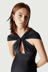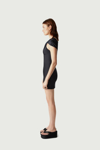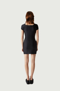Body sculpting minidress with drapped cut out neckline. Coperni's best-selling cut out mini dress now comes in short sleeve version. Twisted cut-out neckline pulls together at the collarbone. Details Black COPS22JS18BIS545 80% Polyamide, 20% Elastane Made in Portugal Size and Fit Model wears size FR36