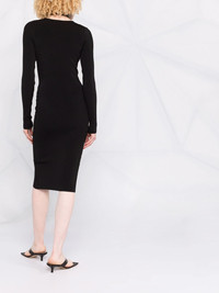 cut-out midi dress Highlights - Black - Stretch-design - Cut-out detailing - Knitted construction - Ribbed detailing - Crossover neck - Long sleeves - Knee-length Imported Composition Viscose 87%, Spandex/Elastane 13% SIZE & FIT Model measurements Height 5 ft 9 in(1.75 m) Bust/Chest 34.64 in(88 cm) Hips 36.61 in(93 cm) Waist 26.37 in(67 cm) Measurement LENGTH 39.37 in(100 cm) FittingInformation This piece fits true to size. We recommend you get your regular size Designed for a close fit at the bust, waist and hips Made with a mid-weight stretch fabric