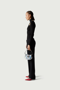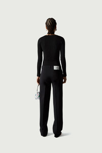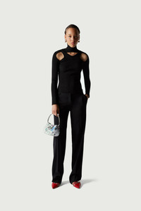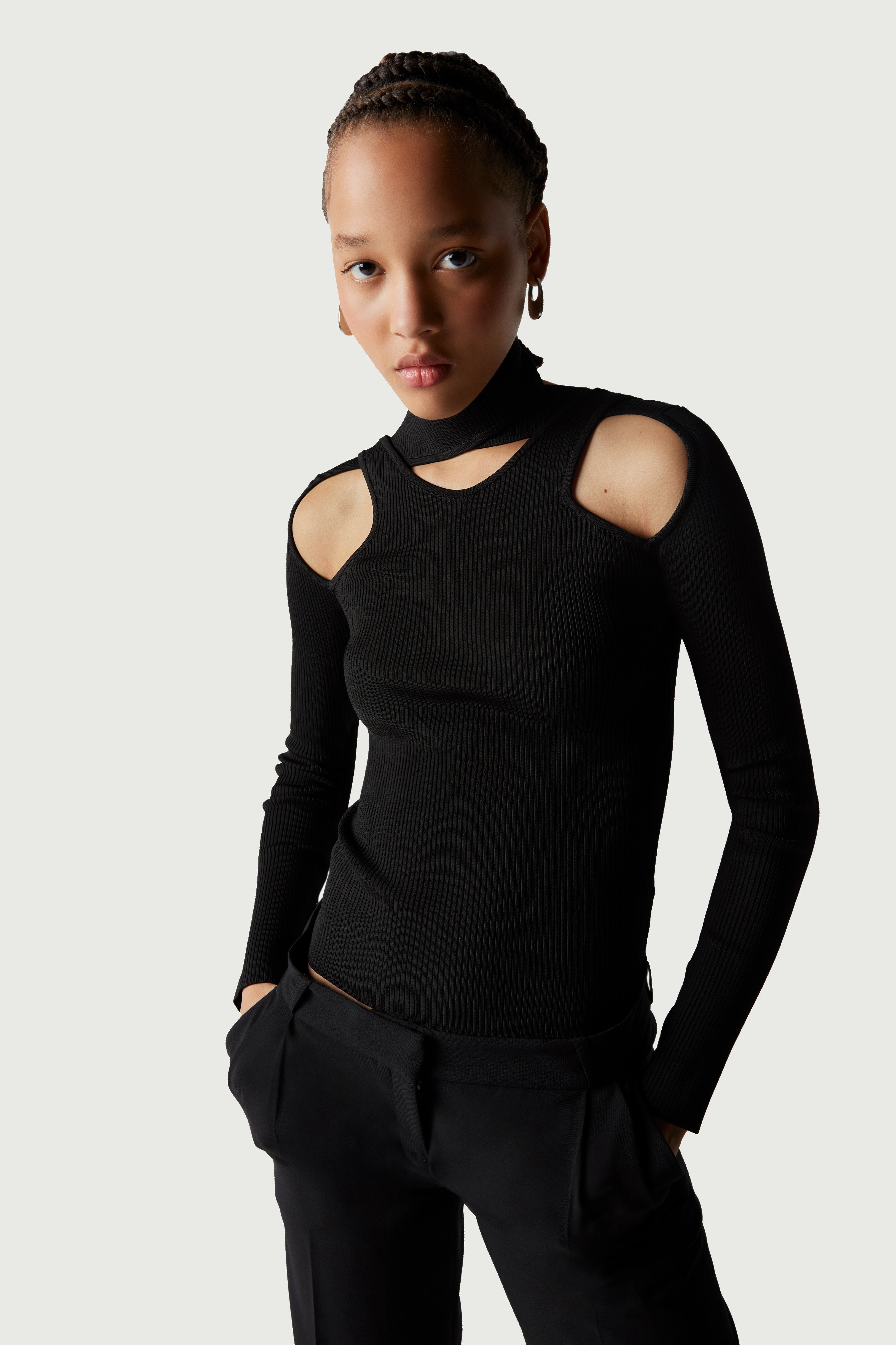 Black knit with criss-cross/cut-out neckline. Finely ribbed knit crafted from stretch-jersey for a slim-fitting silhouette. It has a criss-cross choker-style neckline above cut-outs that run the length of the collarbone. Details Black COPML02BIS600C Size and Fit Model is 172 cm / 5.6 ft and wears size XS