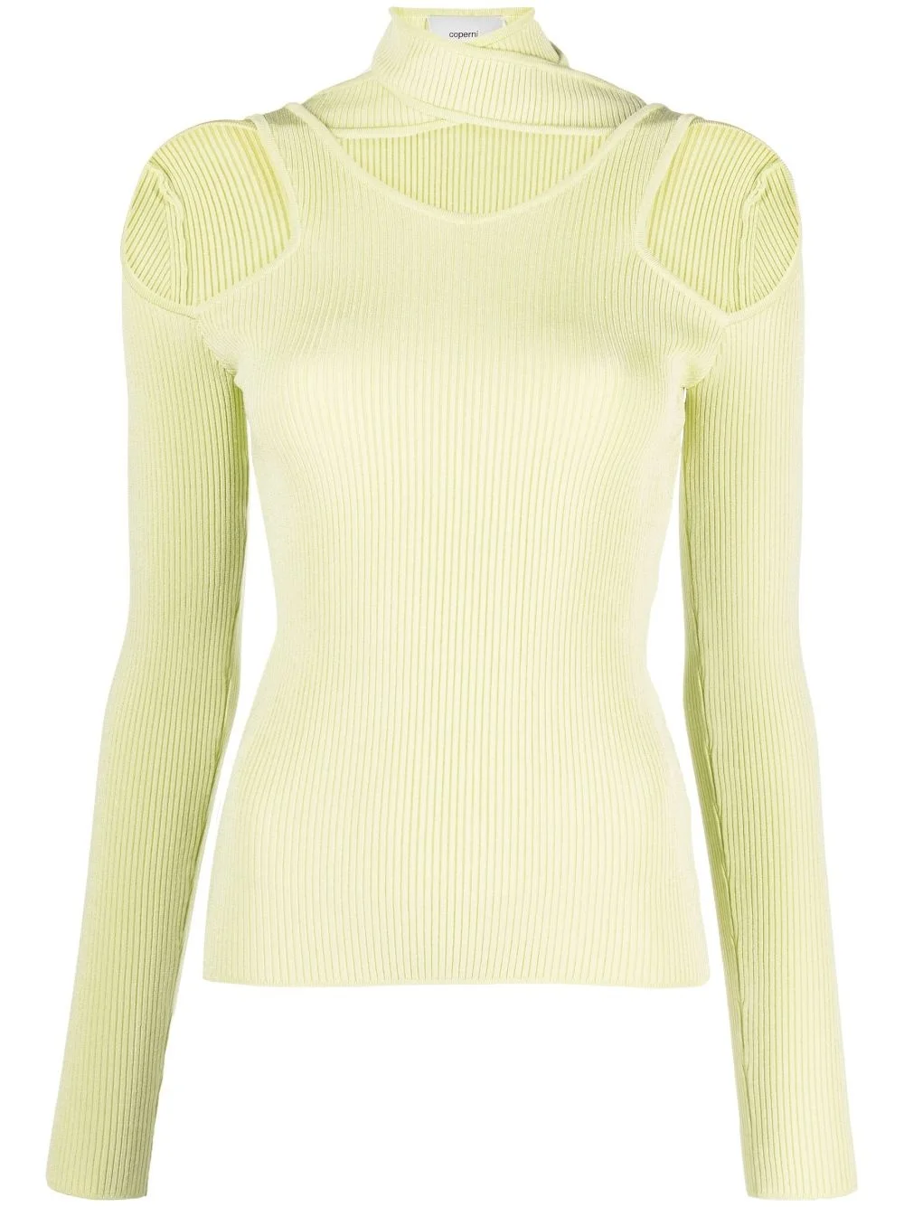 cut-out ribbed sweater Highlights - Light green - Stretch-design - Ribbed knit - Cut-out detailing - Crossover neck - Long sleeves - Straight hem Imported Composition Viscose 87%, Spandex/Elastane 13% SIZE & FIT Model measurements Height 5 ft 11 in(1.8 m) Bust/Chest 31.49 in(80 cm) Hips 36.61 in(93 cm) Waist 24.4 in(62 cm) FittingInformation Designed for a slim fit that sits just away from the body offering a close yet comfortable fit Made with a midweight knit, this piece offers some stretch This piece fits true to size – take your usual size Washing instructions Hand Wash