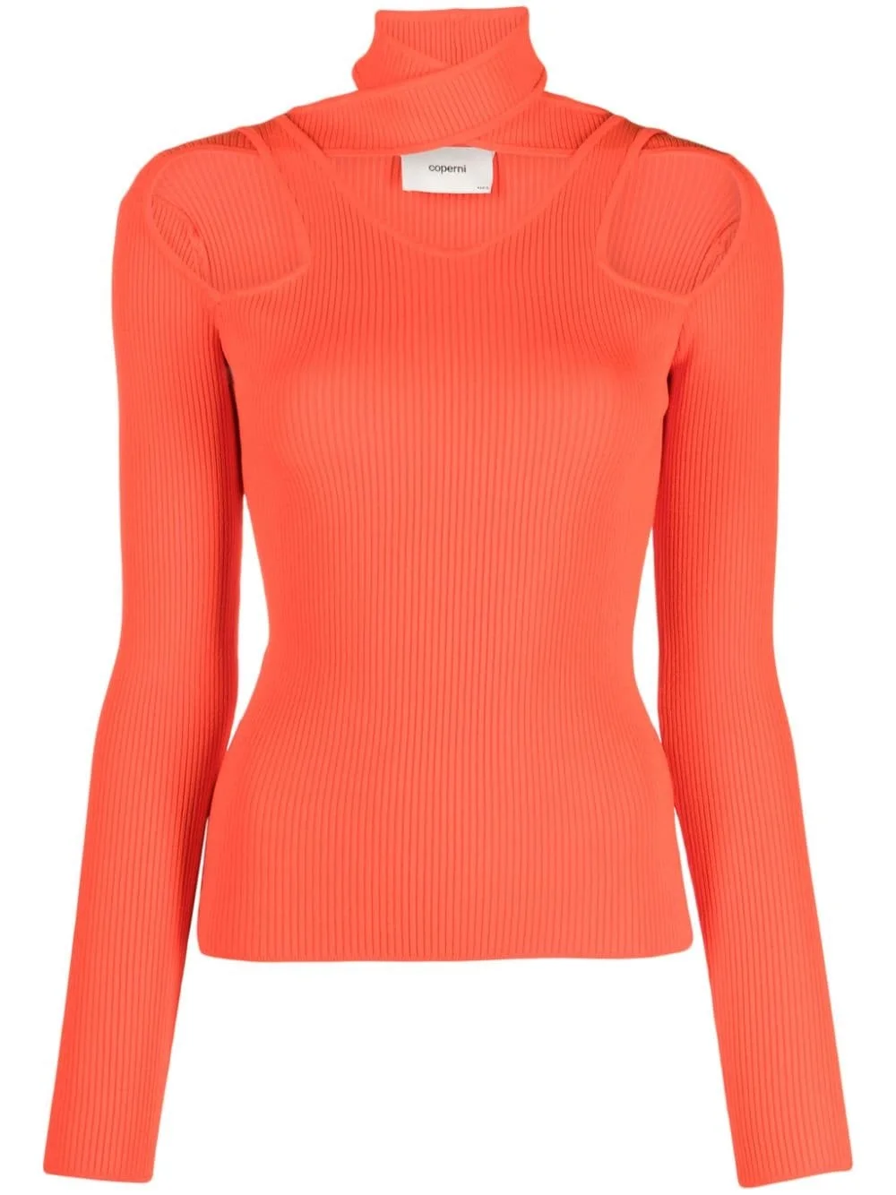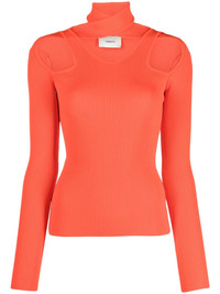 cut-out ribbed sweater Highlights - Pumpkin orange - Ribbed knit - Cut-out detailing - Stretch-design - Bodycon design - High neck - Long sleeves - Straight hem Imported Composition Viscose 87%, Elastane 13% SIZE & FIT Model measurements Height 5 ft 10 in(1.77 m) Bust/Chest 32.28 in(82 cm) Hips 35.03 in(89 cm) Waist 25.19 in(64 cm) FittingInformation Designed for a slim fit that sits just away from the body offering a close yet comfortable fit Made with a midweight knit, this piece offers some stretch This piece fits true to size – take your usual size Washing instructions Hand Wash