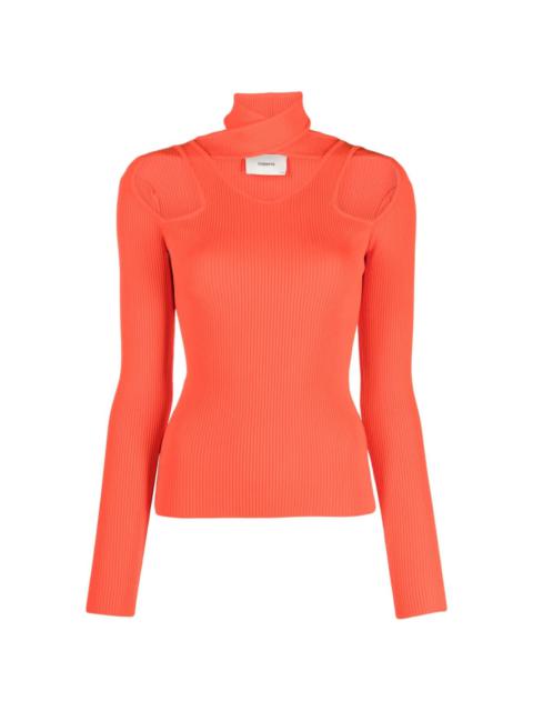 cut-out ribbed-knit top