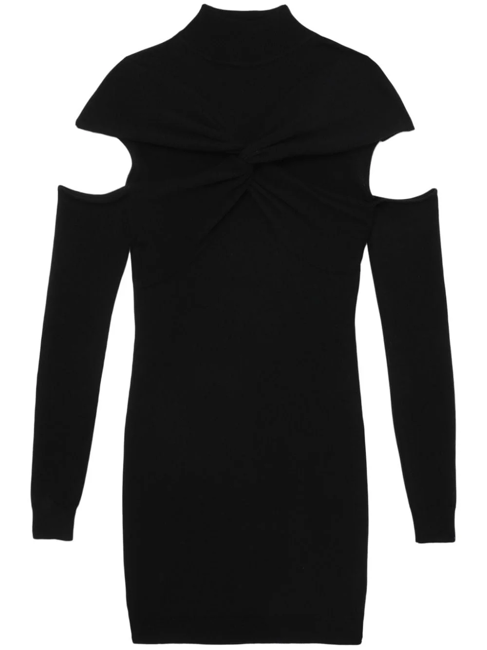 cut-out twisted wool minidress Highlights - Black - Wool - Bodycon design - Cut-out, ruched detailing and twist detailing - Tonal stitching - Mock neck - Long sleeves - Thigh-length Made in Italy Composition Body: Wool 100%
