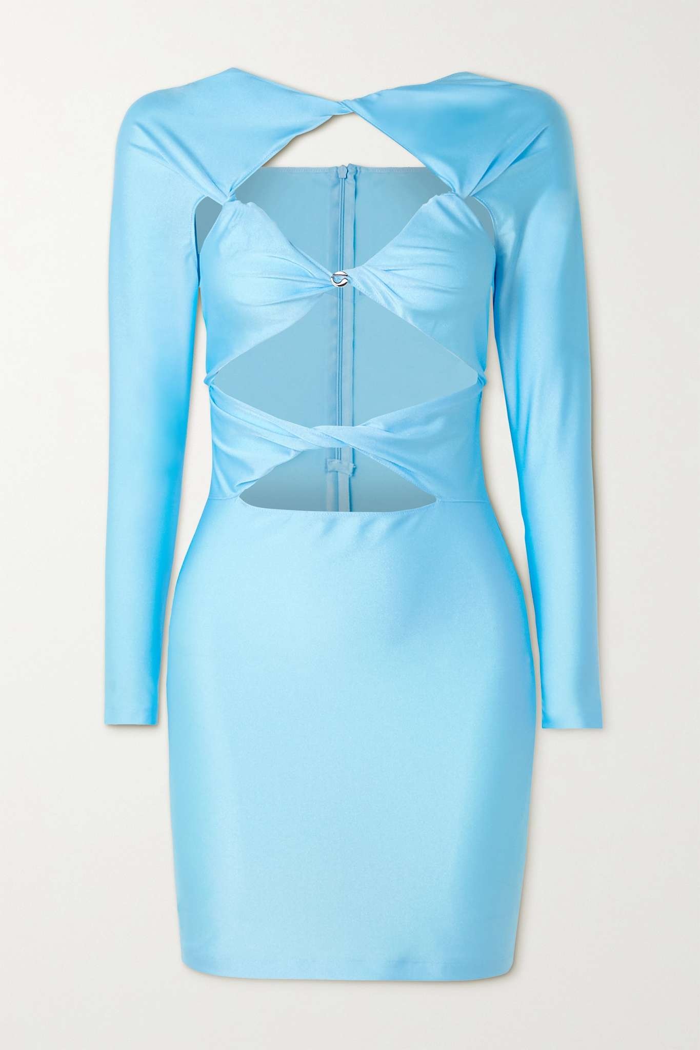 EDITORS'NOTES Parisian label Coperni's dress gives the illusion of two chic separates. Crafted from stretch-jersey, it's detailed with skin-baring cutouts and embellished with a 'C' logo at the chest. Style yours with statement heels and silver-tone jewelry. SIZE & FIT - DETAILS & CARE - Turquoise stretch-jersey - Concealed zip fastening along back - 80% polyamide, 20% elastane