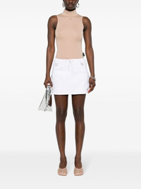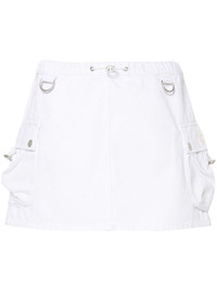 denim cargo mini skirt Highlights - White - Cotton - Denim - D-shape silver-tone hardware - Two side cargo pockets - Logo patch to the side - Thigh-length - Elasticated drawstring waistband Made in Italy Composition Cotton 100% SIZE & FIT Model measurements Height 5 ft 9 in(1.76 m) Bust/Chest 32.28 in(82 cm) Hips 35.03 in(89 cm) Waist 24.8 in(63 cm) FittingInformation This mini-length skirt is intended to be worn low on the hips The elasticated waist allows for a comfortable fit Sturdy and hard-wearing, this denim piece offers no stretch This piece fits true to size – take your usual size