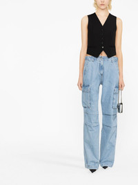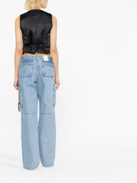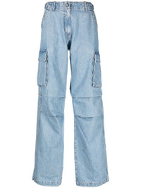 denim cargo trousers Coperni's take on classic cargo styles, these trousers are crafted from light-wash denim to a slouchy straight-leg silhouette. They're fitted with multiple pockets in a nod to more established designs and enhanced with pintucks at the knees for a dose of off-kilter detailing. Highlights - Ice blue - Front button fastening - Two front flap pockets - Two rear patch pockets - Wide leg Made in Italy Composition Outer: Cotton 100% Lining: Cotton 100% SIZE & FIT Model measurements Height 5 ft 9 in(1.75 m) Bust/Chest 31.88 in(81 cm) Hips 33.85 in(86 cm) Waist 24.01 in(61 cm) FittingInformation Designed with a wide-leg cut, these trousers allow for a close fit at the waist and offer a loose and roomy fit over the leg Sturdy and hard-wearing, this denim piece offers no stretch This piece fits true to size – take your usual size Washing instructions Machine Wash