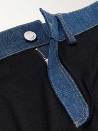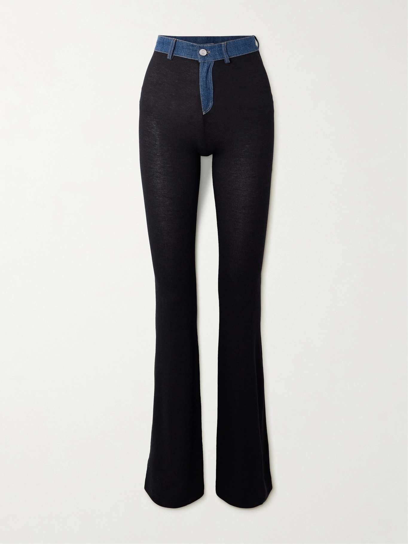 Denim-trimmed ribbed Lyocell-blend flared pants