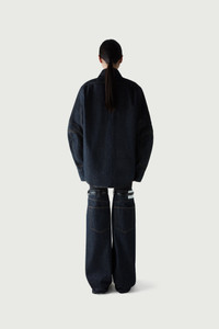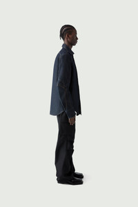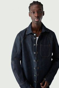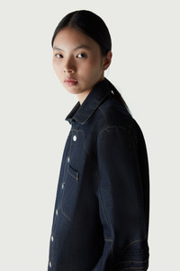 Oversized pure cotton denim shirt. With its straight and generous cut, Coperni's Moto denim shirt can be worn as outerwear or as a standalone piece. As its name suggests, its design is inspired by motor racing jackets, with a panelled construction and large cuffs on extended sleeves. For a more fitted look, choose one size down from your usual size. Details Dark Navy 100% Cotton COPCH30249 Made in Italy Size and Fit Female model is 175 cm / 5'7" ft and is wearing size 36FR. Male model is 185 cm / 6" ft and is wearing size 36FR.