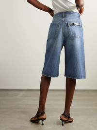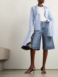 EDITORS'NOTES Coperni's shorts will make anything you wear them with feel so cool. Made from denim, they have wide legs that hit just below the knee and are detailed with a buckle-fastening strap at the back pocket - a brand signature this season. SIZE & FIT Model measurements: - Fits true to size, however those who are between sizes should take the smaller size - Mid-rise, designed for a wide-leg fit - Mid-weight, non-stretchy denim - Model is 177cm/ 5'10" and is wearing a size XSmall - Bust: 79cm/ 31" - Waist: 61cm/ 24" - Hip: 89cm/ 35" DETAILS & CARE - Blue denim - Button and concealed zip fastening at front - 100% cotton