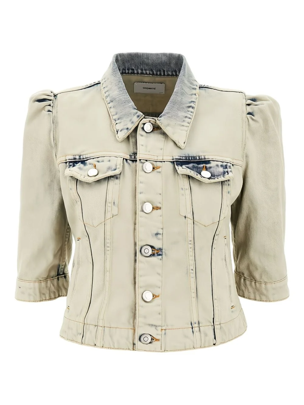 denim jacket Highlights - Light grey - Front button fastening - Two chest flap pockets - Half-length sleeves - Ruched detailing Made in Italy Composition Cotton 100%