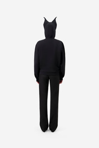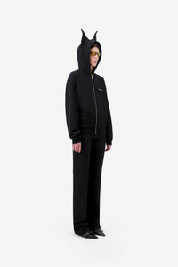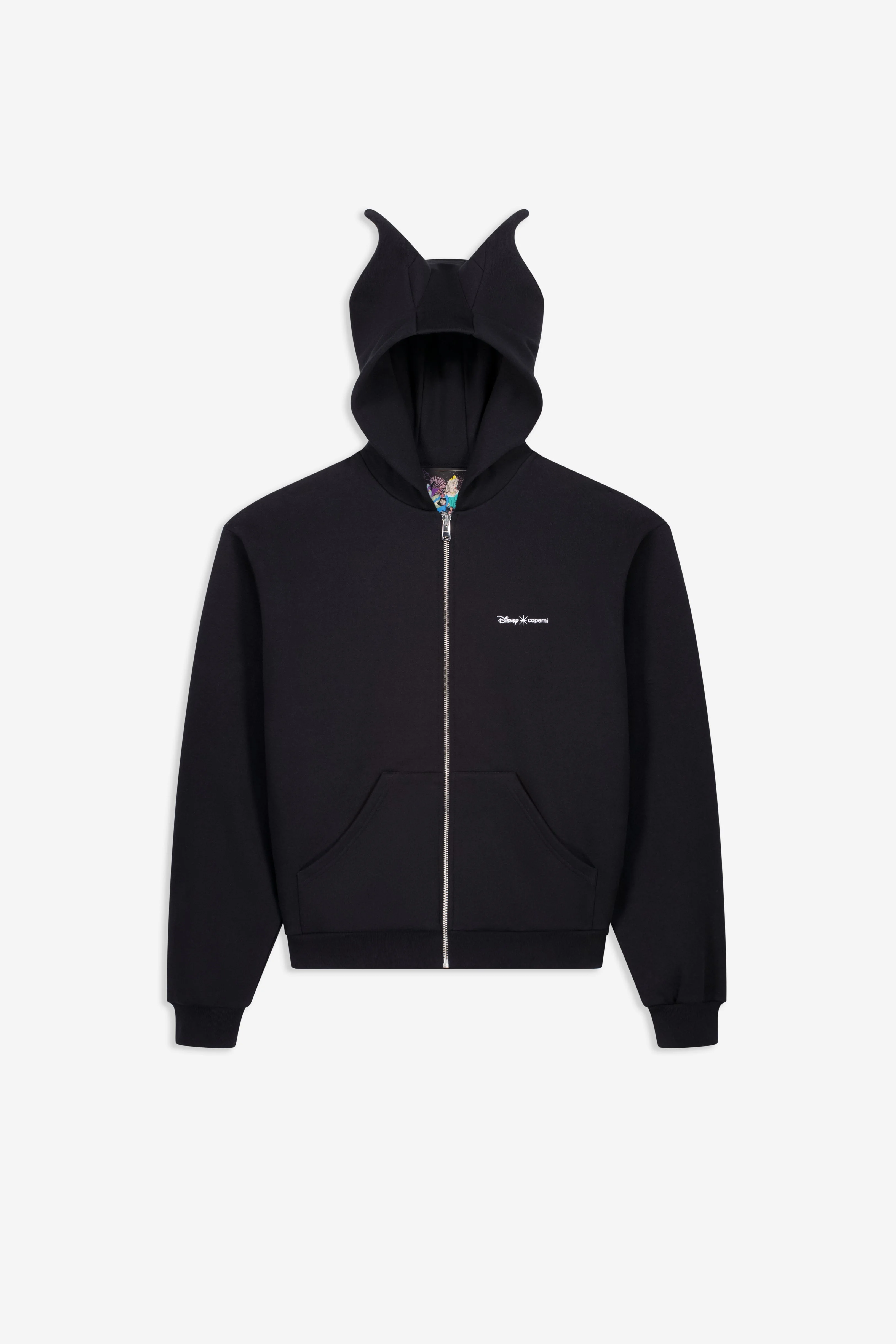 As part of Disney x Coperni capsule, this zip-up hoodie channels the playful darkness of Maleficent. Its sculptural hood curves into two sharp horns, echoing the villain's iconic silhouette. Made from soft organic cotton, it balances theatrical edge with everyday comfort. DETAILS - Composition: Organic Cotton - Made in: Portugal - Sku: DJS162F5035