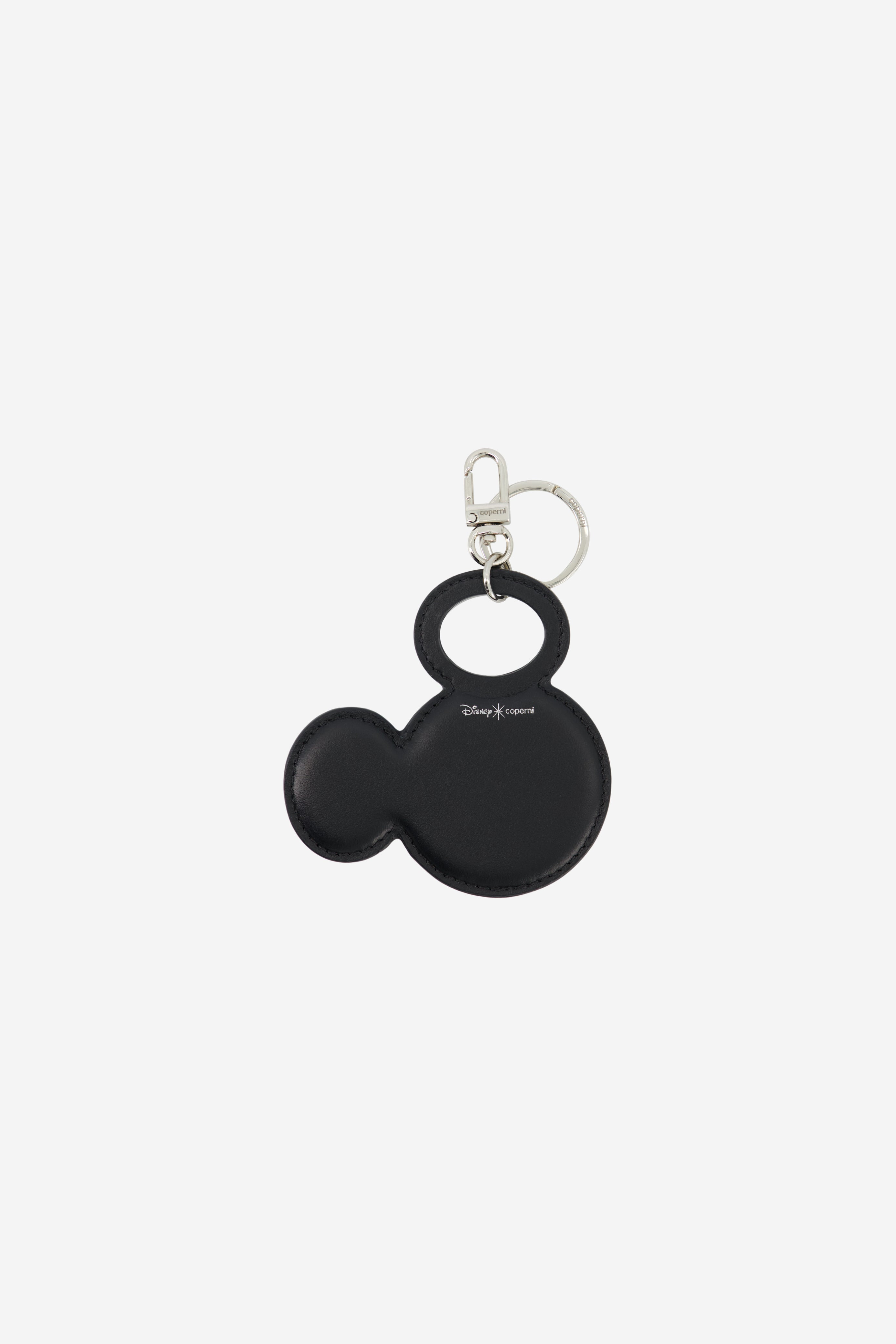 A playful tribute to a timeless icon. Crafted from smooth black leather, the keychain features a Mickey Mouse silhouette, reimagined through Coperni's minimalist lens. Part of the Disney x Coperni capsule, it merges nostalgia with sleek utility. A suptle wink clipped to your keys or bag. Details Black DSLG04F6043 Leather Made in Italy