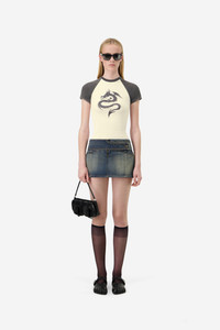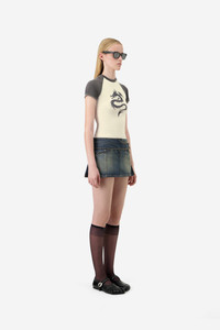 A subtle nod to y2k nostalgia, this baby tee makes a statement with a bold dragon print across the chest. Contrasting raglan sleeves add a sport-chic edge. Cut from soft cotton jersey and finished with a classic crew neckline, it hugs the body with a flattering, cropped fit. A bold yet easy staple for everyday looks. DETAILS - Composition: Cotton - Made in: Portugal - Sku: COPJS177F5041