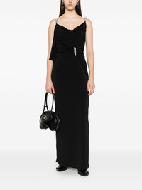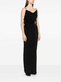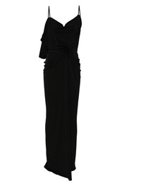 draped washing-clip evening dress Highlights - Black - Draped fabric - Washing clip embellishments - One-shoulder design - Asymmetrical hem - Cinched waist Made in Italy Composition Polyester 95%, Elastane 5% SIZE & FIT Model measurements Height 5 ft 10 in(1.78 m) Bust/Chest 33.85 in(86 cm) Hips 36.61 in(93 cm) Waist 26.77 in(68 cm) Washing instructions Hand Wash