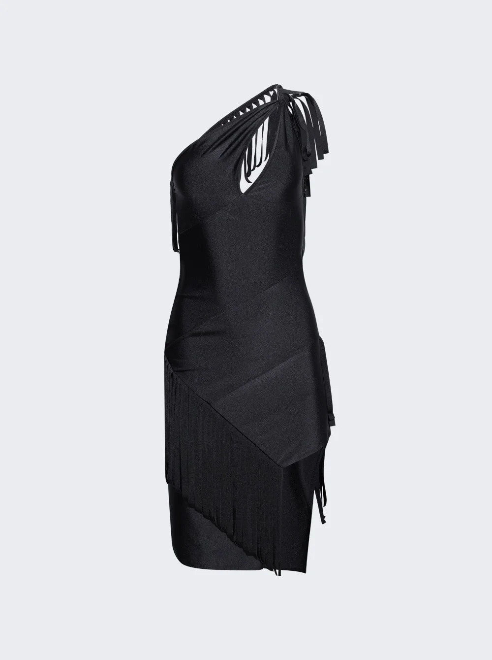 Details - Fitted silhouette - Sleeveless - One shoulder design - Cut out detail at front - Open back - Asymmetric hemline - Fringe design - Care according to label - Material: 80% Polyamide, 20% Elastane - Model is 5'9"/175cm and is wearing a size S Brand Style: COPR186F5001 Designer/Brand: COPERNI