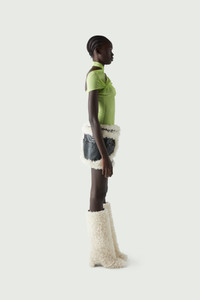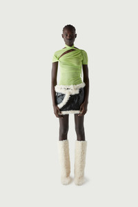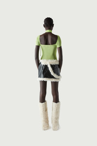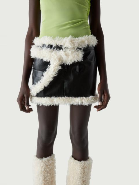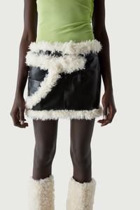 Versatile faux leather mini skirt with faux shearling trim. This hybrid faux leather miniskirt has a layered, wrap around look that's been imaginatively cut and assembled. It features a front curved overlay that can be detached or moved to alter the shape of the silhouette. Its edges are trimmed with soft white faux shearling for a stylish take on a classic biker style. Details Black/Off White Faux Leather COPJ39219 Made in Italy Size and Fit True to size. Model is 175 cm / 5'7" ft and is wearing size 36FR