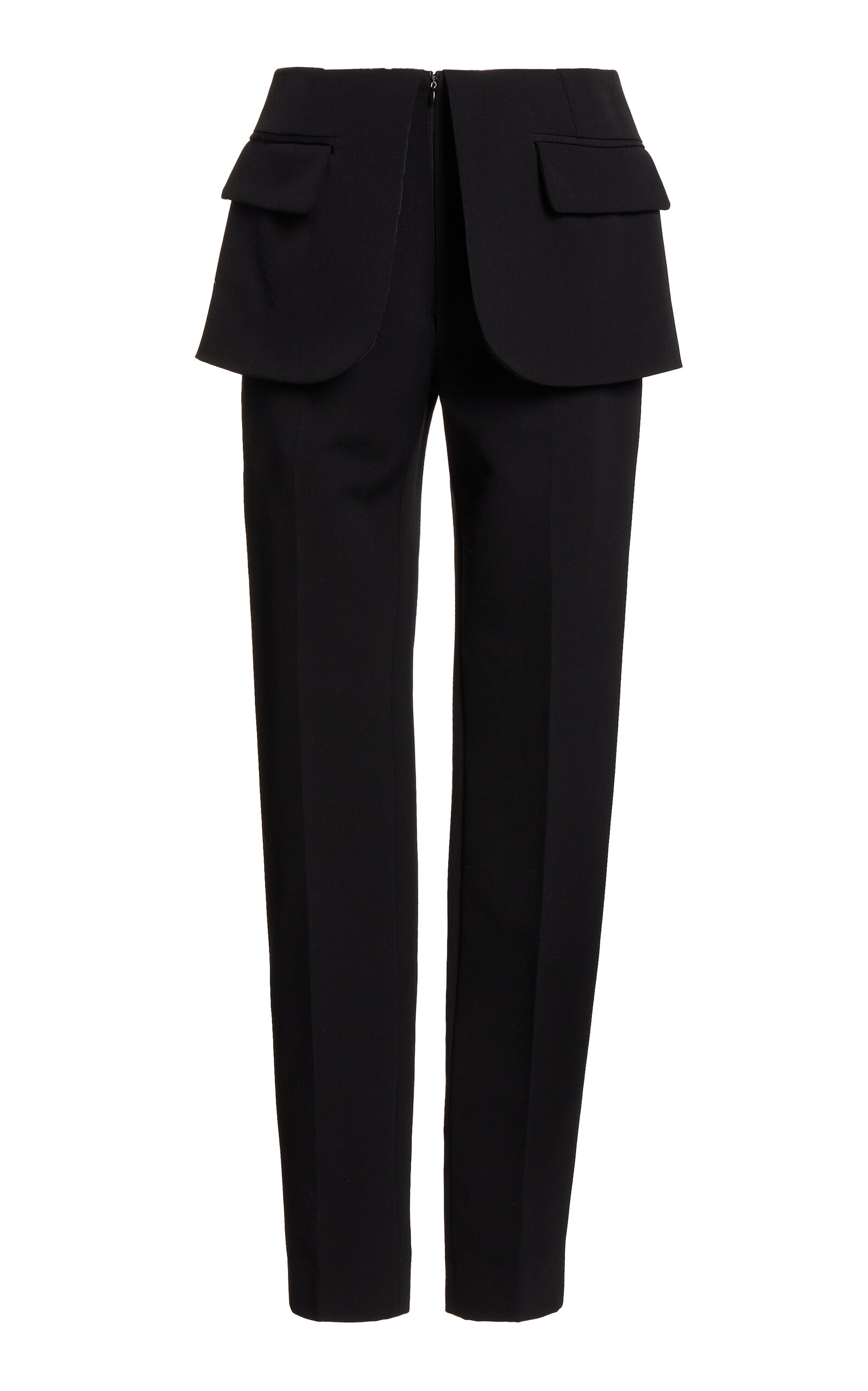 PRODUCT DETAILS - As seen on the FW'23 runway - Tailored, narrow cut, layered flap detail, unlined - Composition: Polyester viscose - Color: Black - Zip fastening - Dry Clean - Made in Portugal