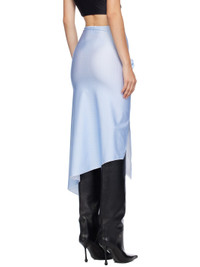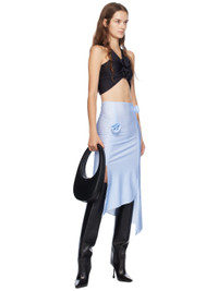 Stretch nylon jersey skirt. Check pattern throughout. · Elasticized waistband · Floral appliques at front · Slits at asymmetric hem Supplier color: Blue/White check