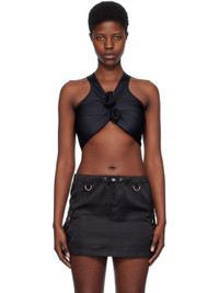 Stretch nylon jersey tank top. · V-neck · Knotted floral detailing at chest · Elasticized cropped hem Supplier color: Black 80% polyamide, 20% elastane. Made in France 241325F111001