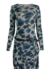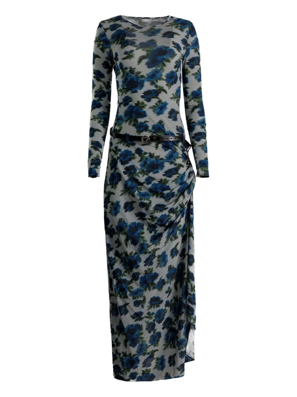 floral belted midi dress Highlights - Blue - Floral print - Belt - Long sleeves - Gathered detail - All-over pattern Made in France Composition Viscose 100% Washing instructions Read Manufacturer Guidelines