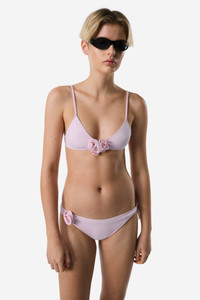 This pale pink bikini top has a classic triangle shape with added flourish in the form of a centrepiece floral embellishment, crafted from two twisted fabric knots inspired by our classic stretch flower dresses Details Pink COPSW01F5025A 85% Polyamide 15% Elastane Made in Portugal Size and Fit Model is 175 cm / 5.9 ft and wears size S