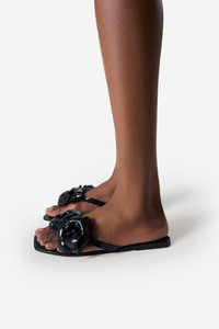 These black slip-on sandals have a jelly like texture as if they have sprung from the sea. Soft and malleable, they are super comfortable yet robust enough to wear on a pebbled beach. They feature large flowers which glisten thanks to their glossy patina. Perfect for holidays and city staycations alike. DETAILS - Composition: 100% Silicone - Made in: Hong Kong - Sku: COPSH84F9013