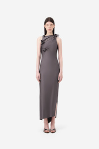 The Flower Gown channels Coperni's affinity for architectural silhouette and unexpected detailing. Made from a sleek technical jersey with a satin-like sheen, this asymmetric design is accentuated by delicate rosette knots that appear to pull and gather the fabric around the body. The result is a sensual, skin-revealing shape - a dynamic approach to femininity. DETAILS - Composition: Polyamide - Made in: France - Sku: COPR44F5001