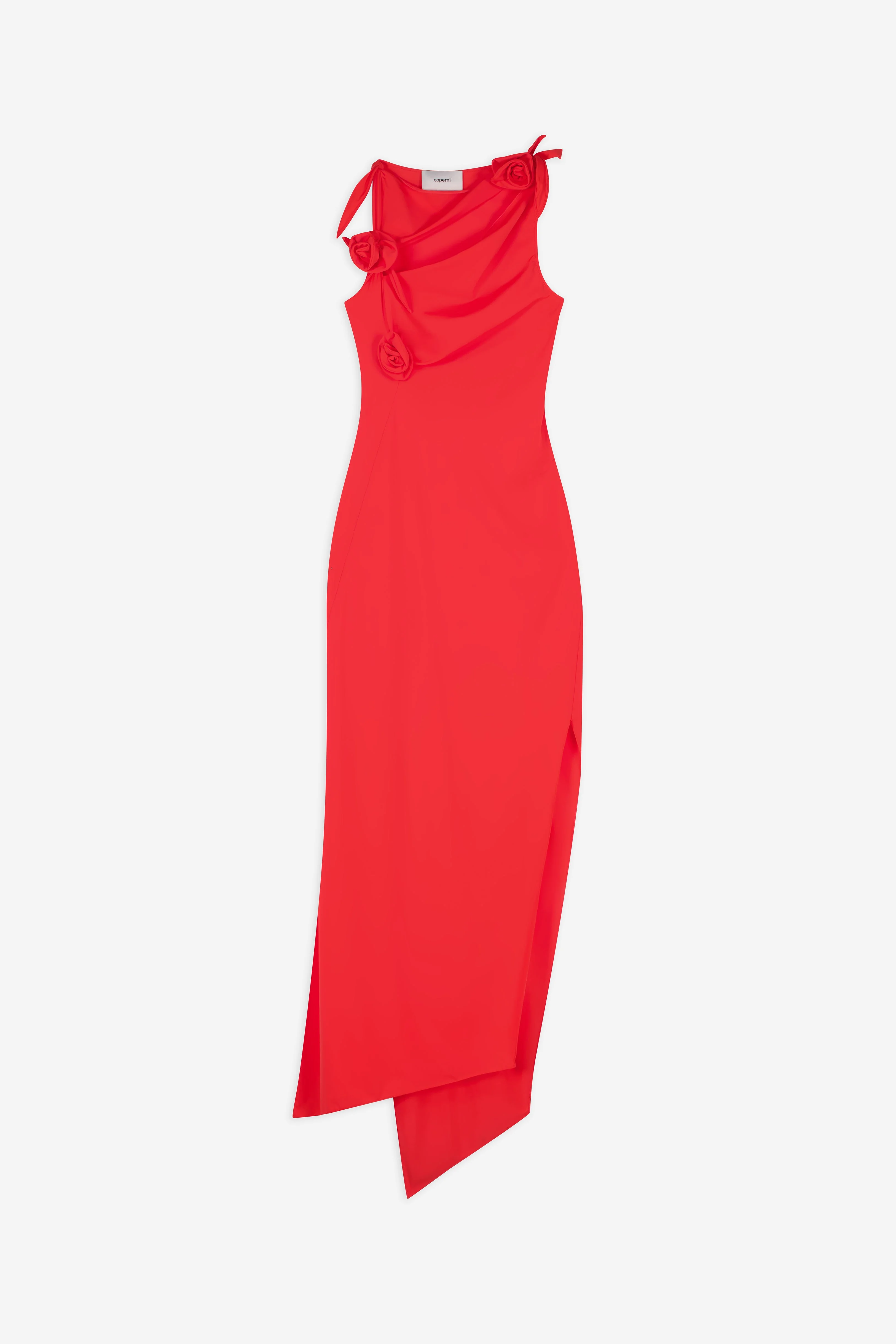 The Flower Gown channels Coperni's affinity for architectural silhouette and unexpected detailing. Made from a sleek technical jersey with a satin-like sheen, this asymmetric design is accentuated by delicate rosette knots that appear to pull and gather the fabric around the body. The result is a sensual, skin-revealing shape - a dynamic approach to femininity. Details - Composition: Polyamide - Made in: France - Sku: COPR44F5021