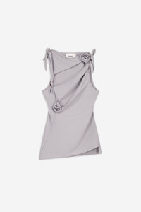 Crafted from technical stretch fabric in grey, this top plays with tension and release. Fabric is knotted and tied in asymmetrical gestures, revealing the skin across the shoulder and chest. Like a petal caught mid-twist, it combines structure and spontaneity in a single silhouette. DETAILS - Composition: Polyamide - Made in: France - Sku: COPT76F5021