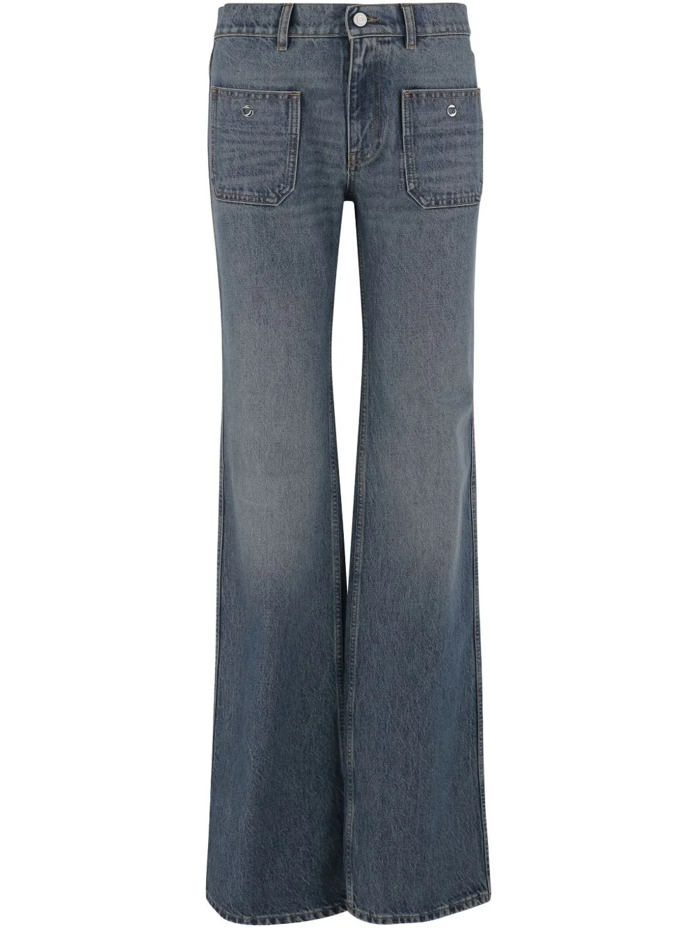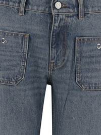 cotton flared jeans Highlights - Blue - Concealed fly and button fastening - Belt loops - Two front patch pockets - Two rear patch pockets Imported Composition Fabric 100%