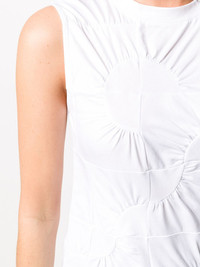 gathered detail vest White cotton gathered detail vest from Coperni featuring gathering details, a round neck and a sleeveless design. Imported Composition Cotton 100% SIZE & FIT Model measurements Height 5 ft 9 in(1.74 m) Bust/Chest 32.28 in(82 cm) Hips 35.82 in(91 cm) Waist 24.01 in(61 cm) FittingInformation This piece fits true to size. We recommend you get your regular size Cut for a slim fit Made with a mid-weight fabric Washing instructions Hand Wash
