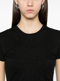 gathered heart-motif mini dress Highlights - Black - Crew neck - Short sleeves - Ribbed cuffs Imported Composition Cotton 100% SIZE & FIT Model measurements Height 5 ft 10 in(1.78 m) Bust/Chest 33.85 in(86 cm) Hips 36.61 in(93 cm) Waist 26.77 in(68 cm) FittingInformation Designed for a slim fit that sits just away from the body offering a close yet comfortable fit Made from a midweight non-stretch fabric, this piece offers minimal elasticity when worn