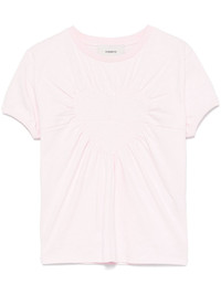 gathered heart-motif T-shirt Highlights - Light pink - Crew neck - Short sleeves - Ribbed cuffs Imported Composition Cotton 100% SIZE & FIT Model measurements Height 5 ft 10 in(1.78 m) Bust/Chest 33.85 in(86 cm) Hips 36.61 in(93 cm) Waist 26.77 in(68 cm) FittingInformation Designed for a slim fit that sits just away from the body offering a close yet comfortable fit Made from a midweight non-stretch fabric, this piece offers minimal elasticity when worn