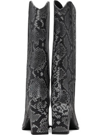 Mid-calf snakeskin-embossed leather boots. · Pointed toe · Buffed leather lining · Covered block heel with rubber injection · Leather sole · Heel: H3.25" Supplier color: Grey/Black Upper: leather. Sole: leather, rubber. Made in Spain 252325F115011
