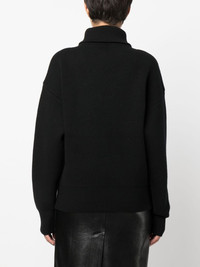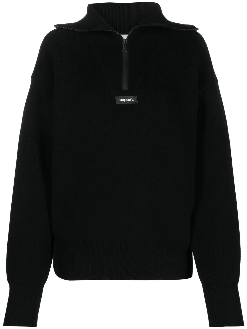 logo patch half-zip jumper Highlights - Black - Stretch-wool - Knitted construction - Roll neck - Half front zip fastening - Extra-long sleeves - Ribbed cuffs and hem Imported Composition Wool 97%, Spandex/Elastane 3% SIZE & FIT Model measurements Height 5 ft 11 in(1.8 m) Bust/Chest 33.07 in(84 cm) Hips 37 in(94 cm) Waist 25.59 in(65 cm) FittingInformation Designed to be unstructured, offering a loose fit throughout The ribbed hem offers a close, comfortable fit Made with a midweight knit, this piece offers some stretch This piece fits true to size – take your usual size Measurement BUST 42 in(106.7 cm) LENGTH 22.99 in(58.4 cm) WAIST 37.99 in(96.5 cm) SLEEVE LENGTH 21.49 in(54.6 cm)