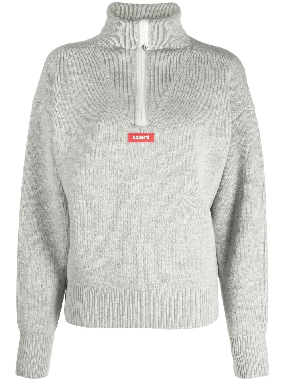 half-zip jumper Coperni updates a classic knit with this long-sleeve jumper. Crafted from a soft wool blend, this design is characterised by a half-zip fastening, accompanied by a funnel neck silhouette, offering a modern finish. Imported Composition Wool 97%, Spandex/Elastane 3% SIZE & FIT Model measurements Height 5 ft 10 in(1.78 m) Bust/Chest 30.31 in(77 cm) Hips 36.61 in(93 cm) Waist 24.8 in(63 cm) FittingInformation This piece fits true to size. We recommend you get your regular size Cut for a loose fit Made with a mid-weight stretch fabric Washing instructions Hand Wash