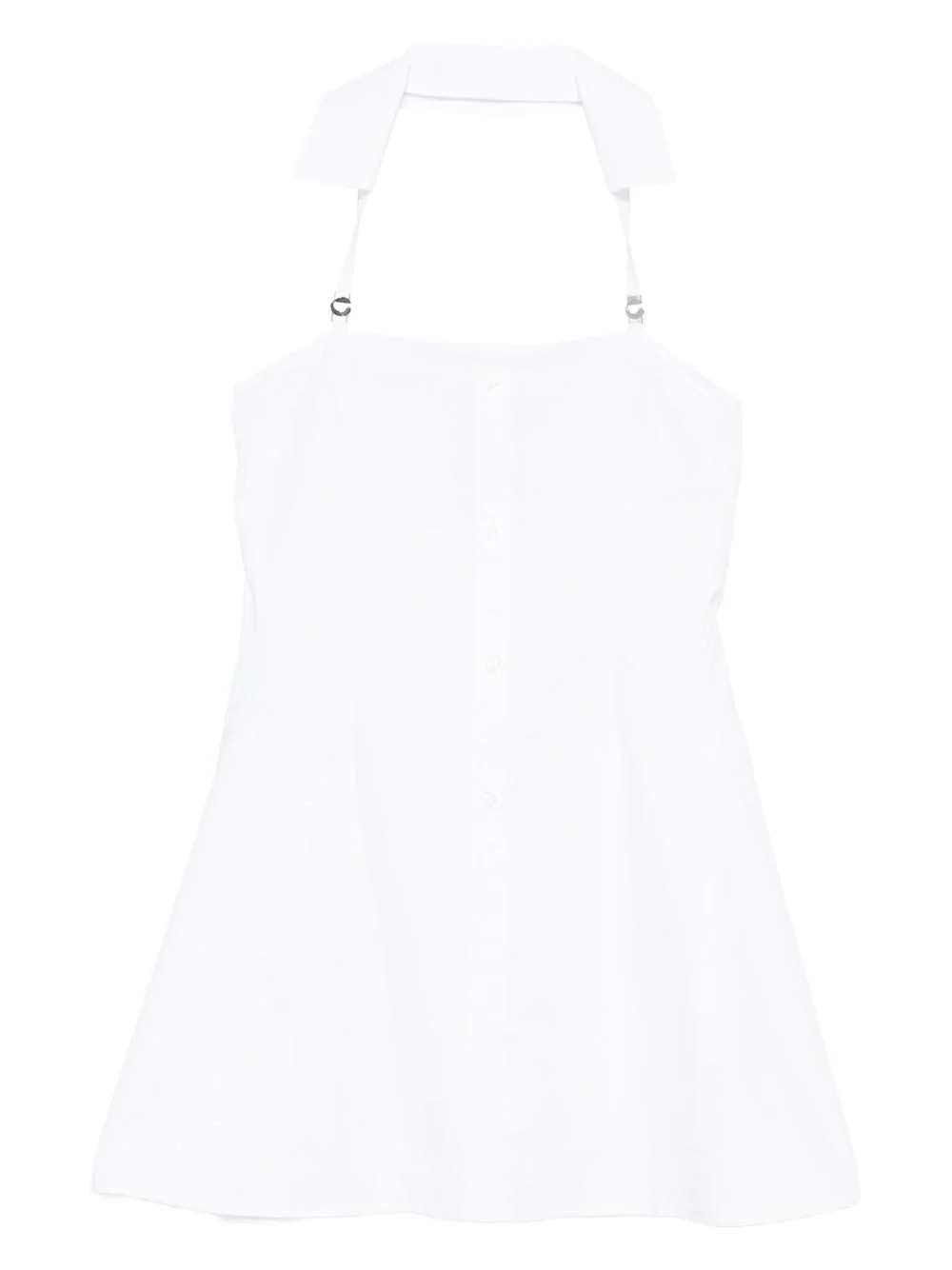 halterneck button-front dress Highlights - White - Collared halter neckline - Button front - Sleeveless - A-line shape - Cotton fabric Imported Composition Cotton 100% SIZE & FIT Model measurements Height 5 ft 10 in(1.78 m) Bust/Chest 31.49 in(80 cm) Hips 37 in(94 cm) Waist 23.62 in(60 cm) Washing instructions Read Manufacturer Guidelines