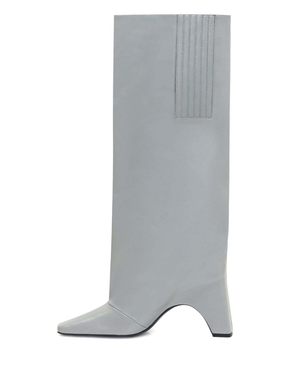 high-heeled thigh-high boots Highlights - Light grey - Pointed toe - Structured high shaft - Sculptural heel - Seamless design Imported Composition Lining: Calf Leather 100% Sole: Calf Leather 100% Outer: Calf Leather 100% SIZE & FIT Measurement HEEL 3.34 in(8.5 cm)