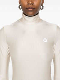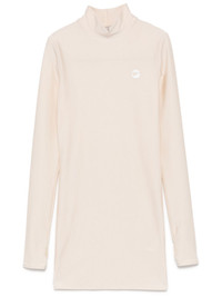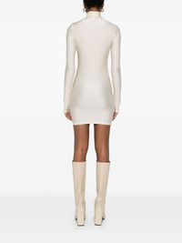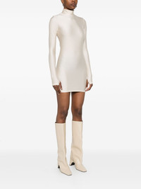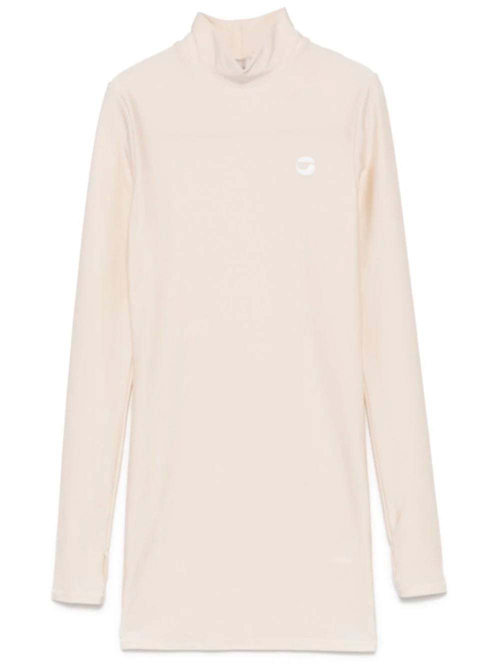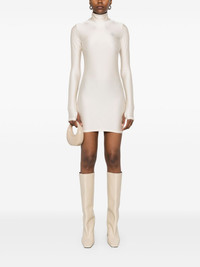 high-neck mini dress Highlights - Light beige - Jersey texture - Satin finish - High neck - Logo print at the chest - Long sleeves - Fitted waistline - Unlined - Straight hem - Thigh-length Imported Composition Polyamide 80%, Elastane 20% SIZE & FIT Model measurements Height 5 ft 11 in(1.8 m) Bust/Chest 31.49 in(80 cm) Hips 36.61 in(93 cm) Waist 24.4 in(62 cm) FittingInformation Designed for a close fit throughout Made from a midweight stretch fabric, this piece offers elasticity and flexibility when worn