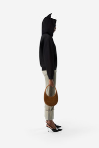Pull the hood up on this black sweatshirt to reveal a playful feature: two fabric constructed horns will appear on your crown. Crafted from pure organic cotton, the hoodie is structured for a loose but flattering shape that sits just above the hips. At the front, it is finessed with a white Coperni logo. Details Black COPJS15BIS521 100% Cotton Made in Portugal Size and Fit Model is 178 cm / 5.10 ft and wears size S