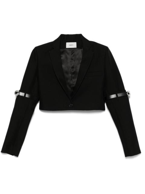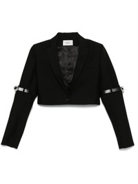 hybrid cropped blazer Highlights - Black - Front button fastening - Chest welt pocket - Logo-buckle detail - Long sleeves Made in France Composition Outer: Recycled Polyester 100% Lining: Polyamide 100%, Acetate 52%, Viscose 48% SIZE & FIT Model measurements Height 5 ft 10 in(1.77 m) Bust/Chest 31.88 in(81 cm) Hips 36.22 in(92 cm) Waist 24.01 in(61 cm) FittingInformation Designed for a relaxed fit, this piece allows for comfort and movement when worn The internal shoulder pads offer a structured shape Made from a midweight non-stretch fabric