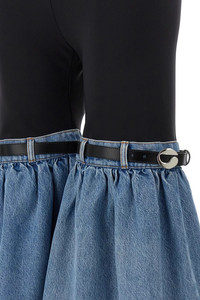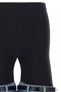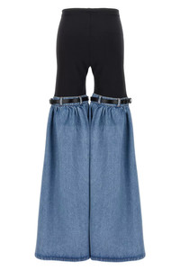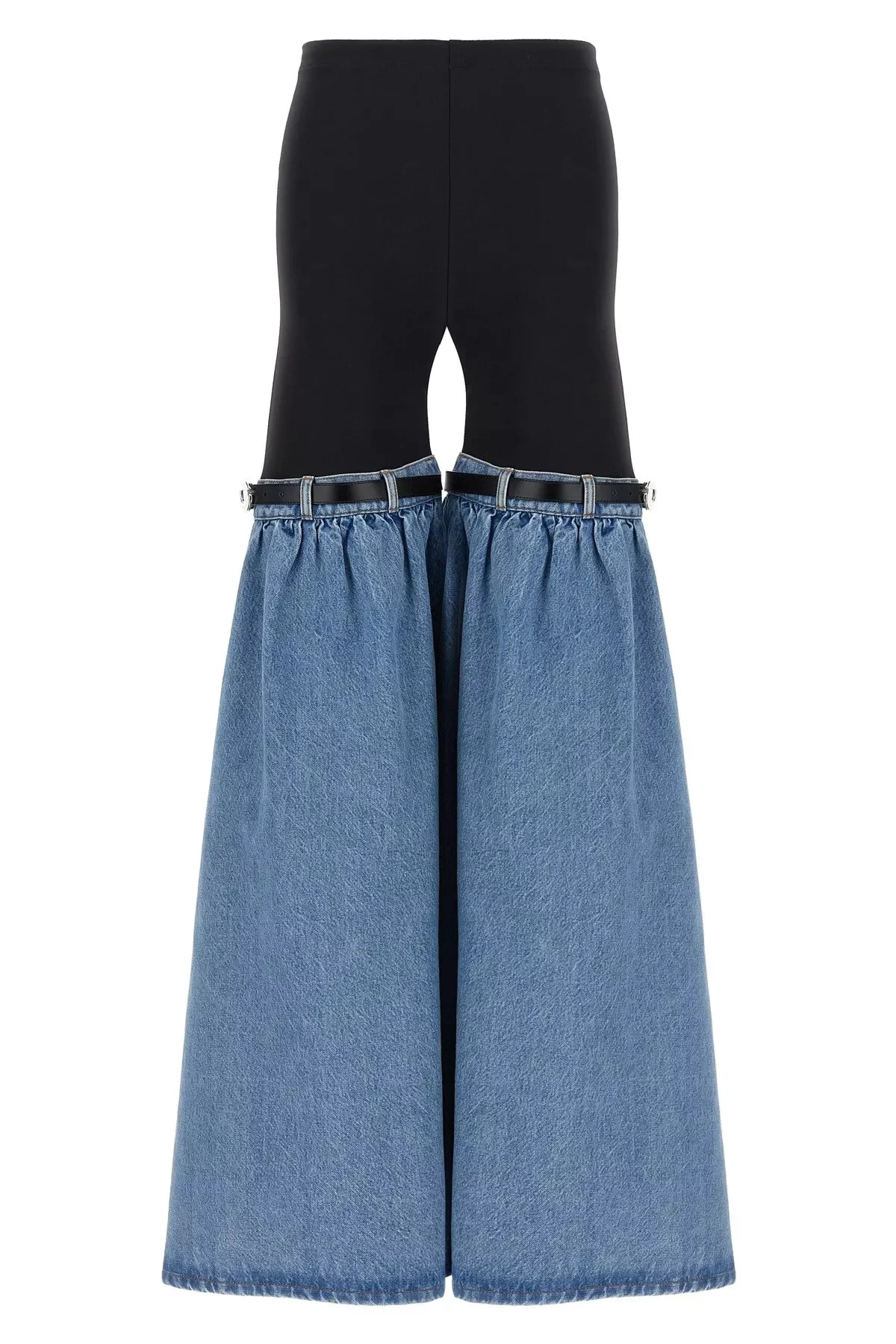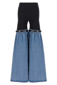 cod. COPP134F2020BLKBLU 'Hybrid Denim Flare' pants in stretch synthetic fabric on the upper part, elastic waistband, leather strap detail in the middle of the leg from which begins a cotton denim fabric with a wide and flared silhouette. Color: Multicolor Size & Fit: true to size fit - FRENCH size Composition: 100% cotton Made in: Italy