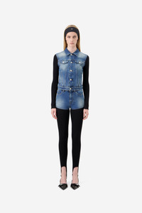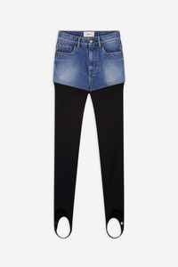 Denim reimagined through a Coperni lens. These hybrid trousers mege the structure of vintage-washed denim shorts with the sleek fit of ribbed leggings. Playing on contrast and illusion, they sculpt the silhouette. DETAILS - Composition: Rib-Denim - Made in: Portugal - Sku: COPP137F2022