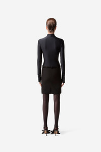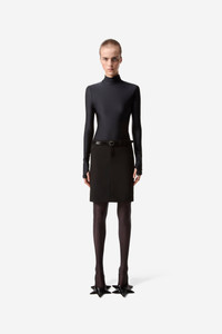 Two classic Coperni styles are fused together for this versatile black hybrid dress. Our iconic high neck top, noted for its close silky fit and subtle metallic sheen, is matched with a timeless black pencil skirt with a low rise waistline and pragmatic front pockets. At once sporty and sophisticated, the dress is a versatile day-to-night staple that evokes a distinctive sense of personal style. Details Black COPR140545 100% Recycled Polyester Made in Portugal Size and Fit Model is 176 cm and wears size S